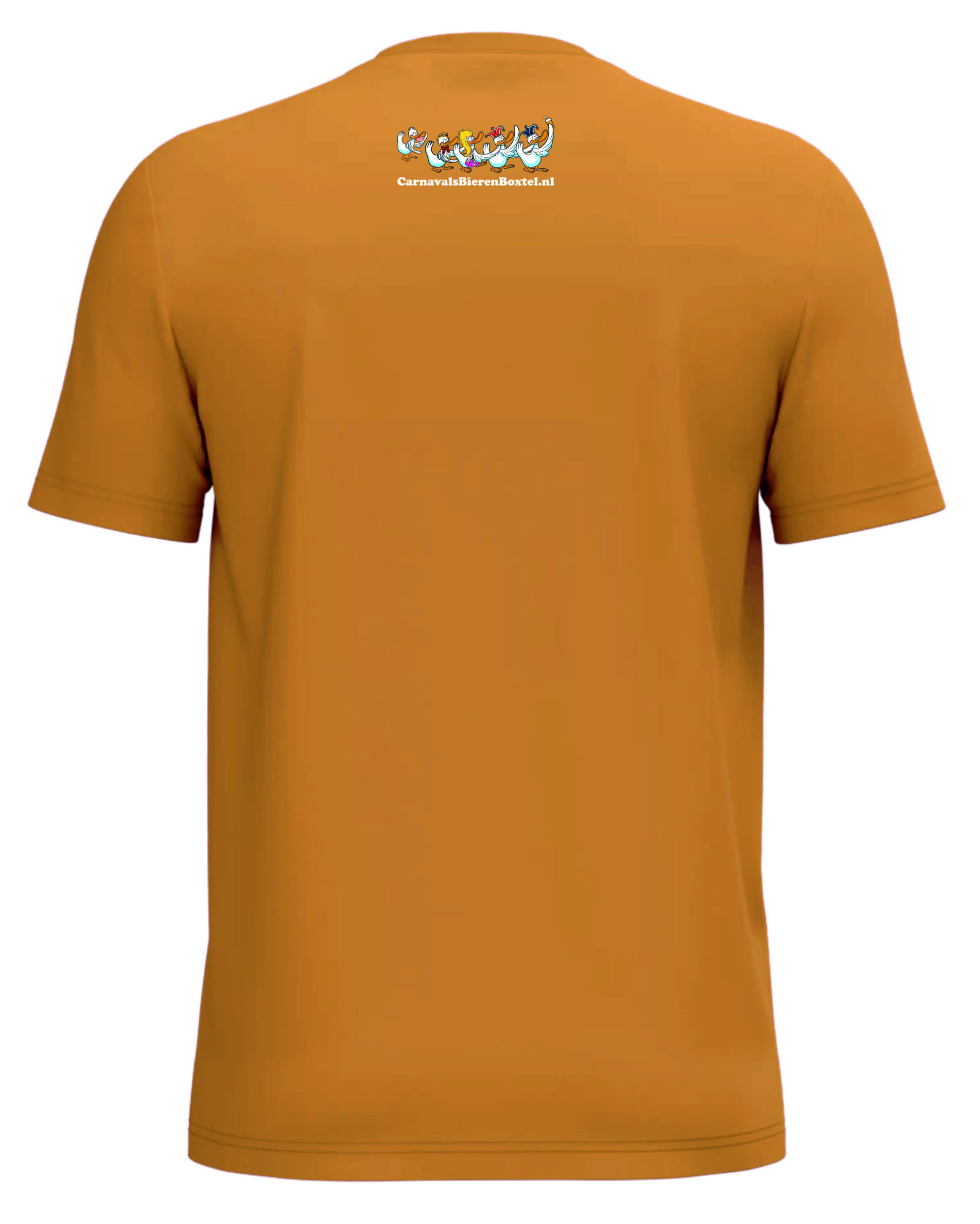 Shirt voorzien van een groot borstlogo van het “Blond Indje” en een ruglogo van “CarnavalsBierenBoxtel.nl”