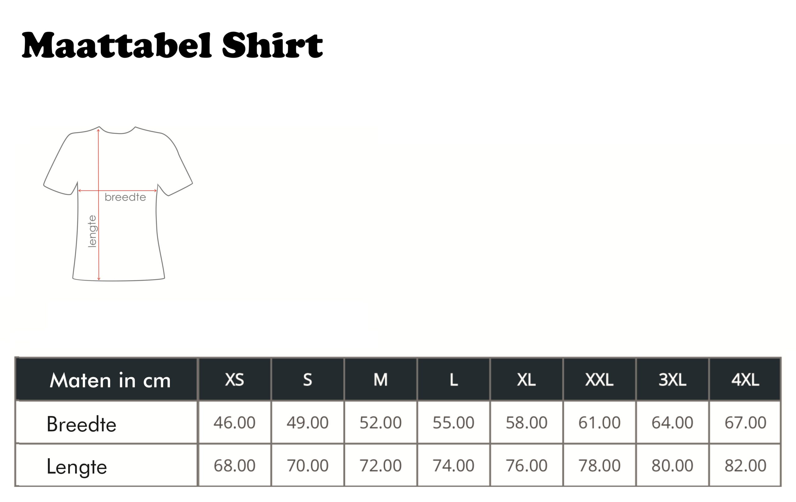 Het shirt wordt op bestelling gemaakt. Levertijd is max. 10 werkdagen.